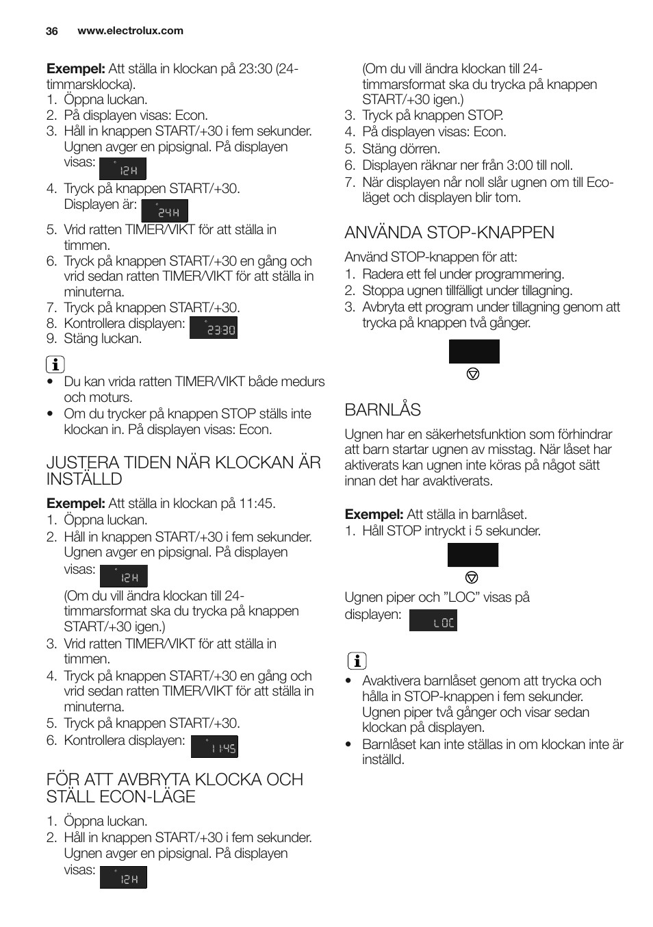 Justera Tiden Nar Klockan Ar Installd For Att Avbryta Klocka Och Stall Econ Lage Anvanda Stop Knappen Electrolux Ems26204ox Manuel D Utilisation Page 36 92 Mode Original